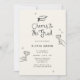 Adorned with charming hand-drawn illustrations of hands holding champagne glasses, this design adds a festive touch, embodying the joy of this significant milestone. The playful sketches create a sense of whimsy, inviting guests to partake in the celebration.