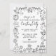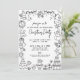 Invite guests to your holiday party with this fun, whimsical and festive Christmas invitation. The design features hand drawn doodle line art illustrations all around the edges, including Santa, snowmen, stockings, greenery, ornaments, and other classic holiday icons, mixed with festive cocktails and even a champagne tower for a lively party vibe. The centre keeps things simple with a handwritten script paired with clean fonts, giving it the look of a hand written note.