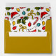 Hand drawn Christmas Santa hat return address envelope with coordinating pattern liner inside.