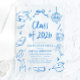 Hand Drawn Class of 2026 Blue Graduation Party Acrylic Invitations