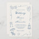 This fun quirky whimsical dusty blue and ivory coastal wedding invitation features a squiggle frame with hand drawn beach themed doodles, and hand written typography. The elegant yet casual coastal wedding design is perfect for seaside and destination weddings.