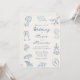 This whimsical coastal dusty blue and ivory wedding invitation is elegant with a relaxed seaside aesthetic, featuring a variety of hand drawn beach doodles framing the casual handwriting script.