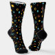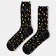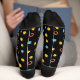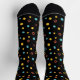 Hand drawn colourful circle pattern on a black socks