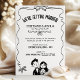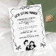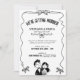 Playful and modern, this black and white wedding invitation features a single wavy ribbon frame with tiny bows and a sweet hand drawn couple illustration. The arched headline and clean layout leave generous space for your names, date, and venue, and you can change the colours of all the illustrations to perfectly match your wedding palette. The monochrome artwork prints beautifully on any paper and works just as well for backyard celebrations, city elopements, or classic ceremonies. Personalise the text with your details and feel free to message me if you would like coordinating pieces.