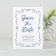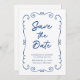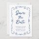 Hand Drawn Doodle Border Cobalt Blue Wedding Save the Date Invitation... An elegant hand drawn doodle design borders your invitation text in handwritten script and traditional serif typography, giving the invitation a unique look for a one-of-a-kind wedding Save the Date card. On back of the card is your wedding website QR code where guests can follow your wedding journey and stay updated on the details. All text, aside from the handwritten script can be easily revised with your own details on the personalisation template.
