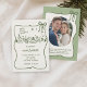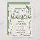 The soft sage green palette paired with warm ivory and taupe tones creates a timeless, sophisticated look that highlights the hand-illustrated frame and festive motifs like wedding bells and bows. The included QR code makes it easy for guests to access your wedding website, RSVP online, or find directions — combining classic charm with modern convenience.