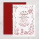 This playful engagement party invitation is bursting with personality, charm, and a whole lot of love! Designed in a fun hand-drawn doodle style, it’s the perfect way to kick off your “we’re engaged!” celebration with style and a smile. Adorned with quirky burgundy red illustrations — from string lights and musical notes to champagne flutes, seafood plates, cupcakes, and bubbly glasses — every detail says “let’s party!” A wavy border playfully wraps around your party info, creating a relaxed, informal vibe that’s ideal for garden parties, backyard brunches, or casual get-togethers with your favorite people.