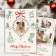 Whimsical Hand Drawn Christmas Motif 4 Photo Merry Christmas Holiday Card. Add a touch of festive charm to your holiday greetings with this adorable hand-drawn scribble Christmas photo card. The front features cute, playful Christmas motifs arranged around a central ornament illustration with a coquette bow, framing your main family photo, along with a cheerful Merry Christmas script and your family name in green and red colors —all set against a soft ivory or cream beige, off white background.