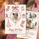 The back includes a coordinating three-photo collage layout with a sweet little bow accent and space for your handwritten-style holiday message.