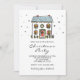 Invite your friends and family for an annual Christmas party with this charming invitation featuring a festive hand-drawn doodle-style house with a wreath on a red front door, little trees, and stars. Fully editable template with the event details, hosting names, and rsvp information.