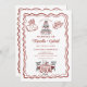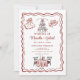This whimsical Italian themed wedding invitation features, hand-drawn style doodles and scribbles in red. A wavy line border frames the romantic Italian inspired invitation. A perfect theme for the couple heading off to a romantic Italian honeymoon after the wedding. This invitation available in print only.