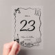 This quirky table number acrylic card features whimsical hand-drawn intricate doodles illustrations. The images are moveable, removable, resizable. Please click the Edit Using Design Tool button to access the design area. For a seamless and coordinated look, explore our range of matching items available in-store. (c) Ever After Wedding