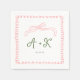 Hand Drawn French Pink and Green Wedding Monogram Napkin
