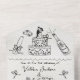 Funky hand drawn wedding all in one Wedding invitations that include the wedding info and RSVP, menu choices postcard that your guests tear off and and send. Envelopes are not needed.  Features wedding cake with bride and groom, champagne, twinkle lights, bows and scribbles in black with a light muted texture background and fun fonts. To make more changes go to Personalise this template. On the bottom you’ll see “Want to customise this design even further? Click on the EDIT using Design tool. From there you can change some of the fonts & some colours, move things around or delete what you need.