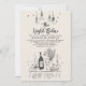 A hand-drawn, funky, and stylish rehearsal dinner invitation designed to make a warm and inviting impression at first sight. This whimsical invite features quirky illustrations of a dinner table with wine, flowers, candles, plates. The handwritten style typography adds to its charm and uniqueness, making it a truly distinctive and delightful invitation.