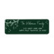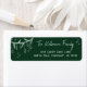 This design has a deep emerald green background with soft sage green artwork and text for a cozy, wintry feel. A simple swag of holiday greenery and hanging ornaments sits in the top left corner, drawn in sage to stand out gently against the darker backdrop. Scattered sage star doodles add a playful touch. Your name and address appear on the right in coordinating sage script and serif fonts, keeping the look clean and seasonal.