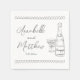 Personalised Hand Drawn Champagne Whimsical Wedding Napkins. This personalised wedding cocktail napkin features a charming and minimalist design, perfect for adding a special touch to your celebration. A delicate illustration of a champagne bottle and glass is prominently displayed in grey, symbolising the festive occasion. The bride and groom's names and wedding date are elegantly showcased beneath the artwork in a mix of handwritten script and simple font, creating a stylish yet approachable look. Styled in a timeless grey and white palette reminiscent of Italian, French, and European aesthetics, this design adds an extra layer of elegance.