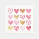 This fun paper napkin design features a pattern of hand drawn hearts in various doodled styles and cheerful pink and gold shades. The background can be changed to any colour that suits your personal tastes and decor. Search ID470 to see other products with this design.