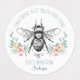 An artistic whimsical lovely honey bee and watercolor floral logo in the round, business honey jar labels for a beekeeper, apiarist, that gives this lovely graphic a classic elegant feel. These labels are adhesive/waterproof for using as product labels, and come in a package of 30 labels.