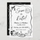 This delightful wedding save the date card features whimsical hand-drawn illustrations with a playful, quirky and romantic vibe. The intricate doodles, chraacterised by wavy and squiggly lines, add a touch of uniqueness and personal flair to your wedding save the date. The black and white palette complements the artistic design, making it a perfect choice for couples looking to infuse a bit of fun and creativity into their special day. Let this save the date set the tone for a joyous celebration filled with love and laughter. Explore our coordinating items available in-store for a cohesive and stylish look. (c) Ever After Wedding