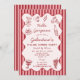 Featuring hand-drawn illustrations of Italian favorites—pasta, wine, martinis, wine bottles, lemons, olives, tomatoes, and grapes on the vine—this design brings a warm, European-inspired charm to your celebration. The modern red and pink striped background paired with a whimsical squiggle doodle frame adds a fun, trendy touch that feels effortless, inviting, and Instagram-ready.