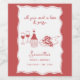 A unique, hand drawn design featuring illustrations of traditional Italian wine and pizza. A beautiful red and white bridal shower design with an Italian Pizza and wine theme. Customise this pizza and wine themed bridal shower design and make it your own!