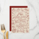 Enhance your wedding reception with this rustic red and cream illustrated menu card. Featuring hand-drawn food icons and a classic design, this customisable menu card adds a charming touch to your special day. Perfect for showcasing your carefully curated menu, this card is both elegant and functional, making it a beautiful keepsake for your guests. Ideal for weddings, anniversaries, or any sophisticated event, this menu card blends style with practicality.