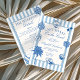 Elegant “Last Toast on the Coast” bachelorette weekend itinerary invitation. Featuring hand-drawn nautical oceanside illustrations and soft coastal tones of dusty French blue, with classy retro modern country club stripes, perfect for a chic beach weekend or whimsical and classy coastal celebration.