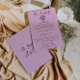 Simple and stylish retro colorful wedding guest info details. With lilac pink background and deep burgundy hand written text layout with whimsical wordings and vintage hand drawn bouquet. All the info are customizable as website, transportation, accommodation . Grab it along with other products from this classy hand made retro wedding suite.