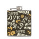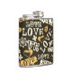 The flask itself is fine. It’s a cheap flask, obviously bought in bulk, however am prepared to overlook that. Given that it is a personalized item, I would have liked to have seen gift boxing instead of the generic packaging. Terrible printing, and/or quality. It’s a cheap, tacky vinyl. It is not cut straight and is also applied in a way that it is overhanging the bottom, causing the glue to catch on items and it will eventually roll and tear, damaging the wrap.