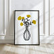 The rich mustard yellow blooms bring a sense of warmth and cheer, while the minimalist black ink details keep the design elegant and versatile. This balanced blend of illustration and watercolor makes the print an inviting accent for kitchens, living rooms, bedrooms, offices, or creative spaces.