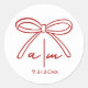 Hand Drawn Monogram Red Bow Wedding Classic Round Sticker