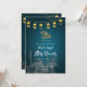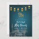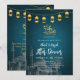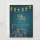 This artistic Iftar invitation features a beautiful hand-drawn sketch of a mosque and palm trees against a textured teal background. Decorated with hanging gold lanterns (fanous), it offers a soulful and traditional feel for your Ramadan gathering or community dinner.