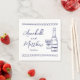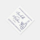 Decorative border accents in navy blue frame the design, adding a subtle and sophisticated detail to the napkin. Fully customisable, this design allows you to adjust the text and layout to suit your wedding theme. Ideal for wedding receptions, it also works beautifully for a rehearsal dinner or bridal shower, making it a versatile and elegant addition to your special events.