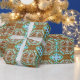 Hand Drawn Owl Mandala Artwork with tree branches, Fall leaves and blue and brown accents birthday gift wrap.