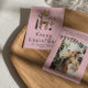 If you are looking for a simple minimalist beautiful and easy editable Christmas card. This one is perfect for you. And as you see the design features a green hand made and drawn Christmas tree and a reindeer, With green hand written typography of MERRY CHRISTMAS. And your family name and year under it. All on pink background. And In the back you got a a customisable Christmas greeting and family photo inside a hand drawn green frame.