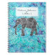 Hand drawn paisley boho elephant blue turquoise notebook