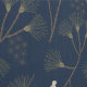 Hand Drawn Pine Tree and Bird Pattern in Roya Blue Wallpaper