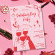 Hand Drawn Pink Red Galentine's Day Cocktail Party Invitation