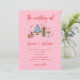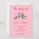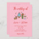 Hand Drawn Funky Pink Retro Whimsical all in one Wedding Invitation. This unique invitation features unique author's illustrations, made specifically for this wedding collection.