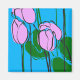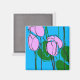 Hand Drawn Pink Tulips on Sky Blue Magnet