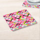 Hand Drawn Pink Zig Zag Pattern Square Paper Coaster