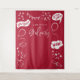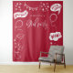 Celebrate your graduation in style with this fun, modern party backdrop featuring playful doodle elements. Red background.