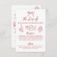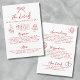 Hand Drawn Quirky Whimsical Wedding Details Enclosure Card. This fun and quirky wedding details enclosure card features a playful design with a hand-drawn bow at the top, surrounded by cute little illustrations like a champagne glass, dining flatware, wedding cake, party-perfect disco ball, just married car, and wedding rings. These charming accents bring a lighthearted vibe to the card in an Italian style with red and white hues.