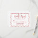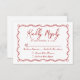 Styled in timeless red and white, the card uses a mix of script and handwritten style fonts to keep the look casual yet elegant. On the back, a set of three small hand drawn hearts in the right corner adds a sweet and personal detail, perfectly complementing the overall design.