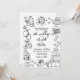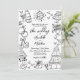 Hand Drawn Quirky Sketches Whimsical Wedding Invitation. Perfect for couples wanting a creative, lighthearted touch, this playful design stands out with a dynamic arrangement of large hand-drawn illustrations surrounding the text and flowing off the edges for an artistic and modern look. Styled in a timeless black-and-white palette, it feels personal and unique, blending charm with elegance.