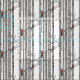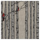 This modern natural linen fabric showcases a hand-drawn birch tree pattern with red cardinal birds perched on branches, illustrated in black ink with fine cross-hatch shading. Perfect for rustic home decor, winter crafts, or woodland-inspired sewing projects.