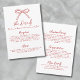This wedding details enclosure card features a simple, minimalist design with a delicate hand-drawn bow at the top. The front includes a clean layout with a mix of handwritten script and a simple handwritten font, offering a sophisticated yet approachable feel. Styled in a timeless red and white palette reminiscent of Italian, French, and European aesthetics, this design adds a charming touch.