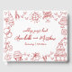 European Inspired Red and White Hand-Drawn Quirky Sketches Whimsical Wedding Guest Book. This creative and playful design is perfect for couples who want a unique and lighthearted keepsake for their special day. Styled in a timeless black-and-white palette with red accents, the guest book features fun hand-drawn illustrations that flow dynamically across the front, back, and spine for a cohesive, artistic look with a touch of European charm.