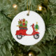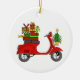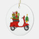Hand drawn retro christmas scooter with gifts ceramic ornament